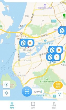 - 点击底部充电标签,在上方搜索框输入关键词查找充电站点。