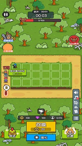 2、战斗初期需要召唤英雄角色,布置你的防御阵容。