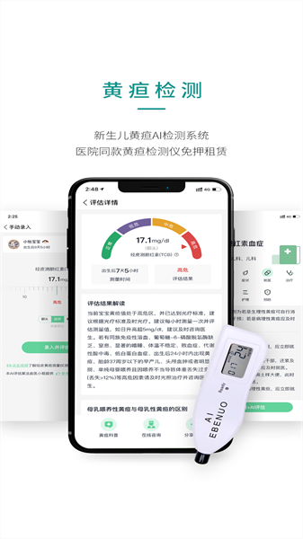 租赁三甲医院级别的黄疸检测仪,自行监测宝宝黄疸变化。