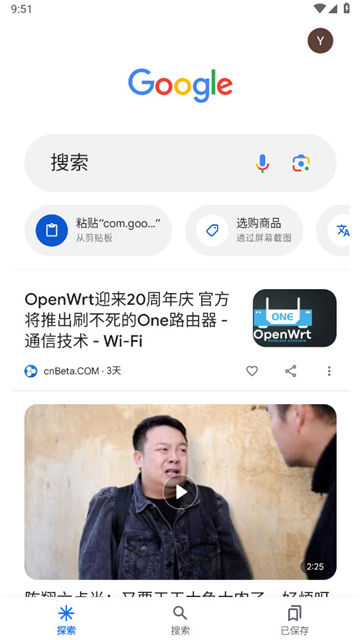 1.打开谷歌搜索手机版(Google),首页就会有很多的推荐视频。