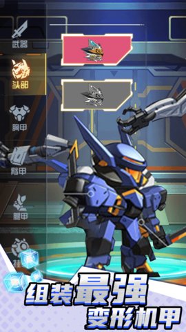 合成装备配件并装备到机甲,提升机甲的属性和能力,增强乱斗实力。