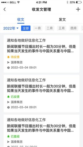 提供了收发文管理服务,用户可以在线接收发送文件。
