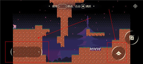 4、在木制的平台边缘的时候,当标记出现的时候,点击此键可以使出斩击,帮助我们进行飞跃