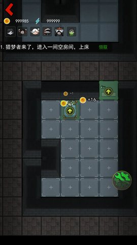 → 将床的收益升级到每跳+32 → 摆下5个左右的游戏机 → 将门升级到钢门3
