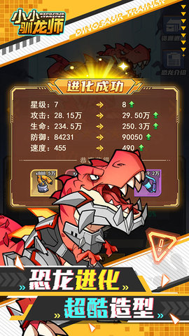 2、战队界面可以对主角或者你的恐龙进行升级;