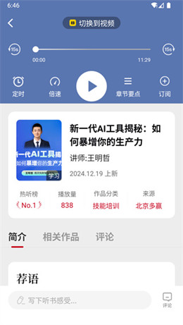 随心切换:支持随心切换不同的书籍收听,感受不同书籍的故事;