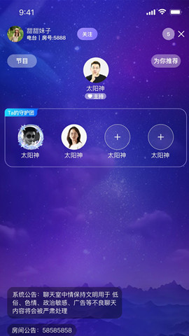 关注喜欢的用户和房间,及时获取最新动态,参与点赞、评论等互动。
