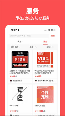 设计、开发、文案、营销、装修、生活、企业服务、全部、近期浏览;