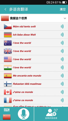 提供多语言翻译,选择多国语言,实时的语音全部翻译;