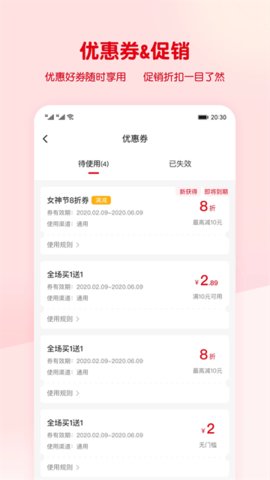 提供丰富优惠券和促销活动息,可以随时查看并享用优惠好券。