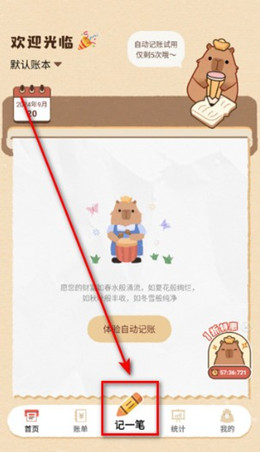 1、打开巴拉记账,进入软件首页,点击“记一笔”;