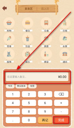 3、输入金额,点击“完成”确认保存,这笔账目便成功记录软件中了。