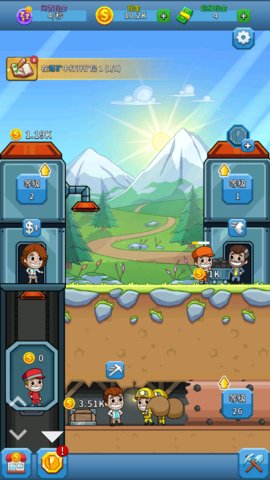 操作简单点击矿工即可自动采矿,经理可监督矿工干活。