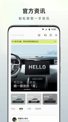 阿维塔一款专为阿维塔车主打造的服务团结,提供了全面的汽车资讯享受便捷汽车服务。阿维塔App集车辆信息、社区交流、在线服务为一体综合性汽车服务。通过大数据分析习惯和喜好,推荐最符合需求商品和服务,下面一起来看看相关的信息。