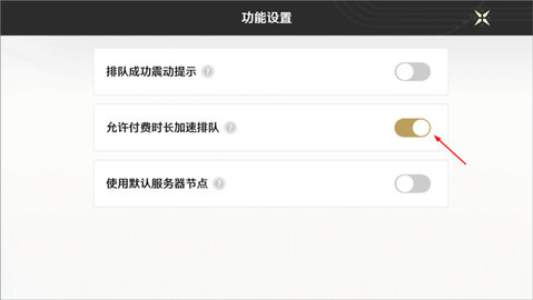 4、开启允许付费时长加速排队,然后在需要排队时,使用付费时长进入快速通道。