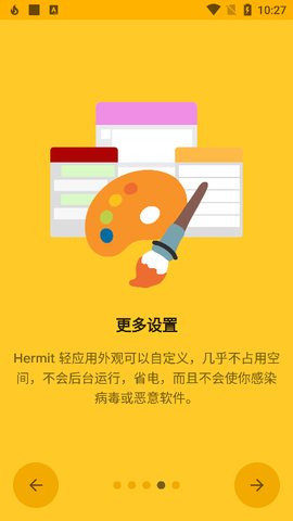 Hermit轻应用外观可以自定义,几乎不占用空间,不会后台运行,省电,而且不会使你感染病毒或恶意软件。