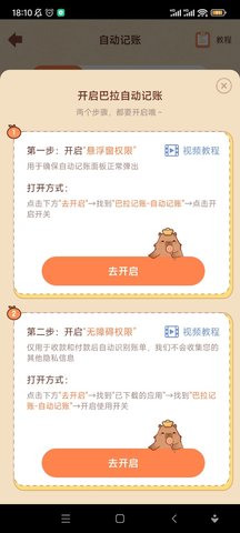 还支持自动记账,开启后就会自动识别并帮你记录。不过需要开启无障碍和悬浮窗权限哦。自动记账功能号称 “花钱收钱一键识别,省时省力解放双手!”