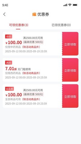 3、软件的领券中心可查看可领优惠券和已领取优惠券。