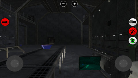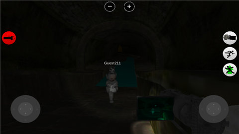 3、进入游戏左边为控制方向健,右边则控制视角,其中的按钮依次为灯开关,摄像机放大,人物的跳和跑健。
