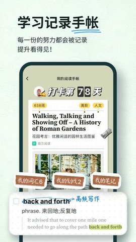 学习进度都会通过图表生动展示,包括每日的单词和短文数。