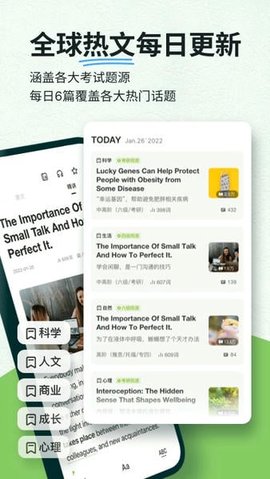 内容涵盖新闻、故事、科普等,即时添加到个人学习计划中。