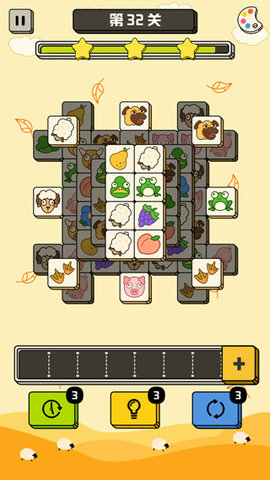 点击将3个相同方块匹配到即可消除,当场上所有方块被消除