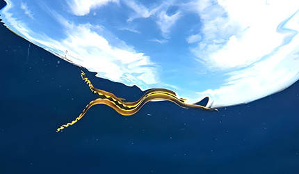 海蛇没有鳃,而是用肺呼吸。海蛇的肺可以储存大量空气,只需要定时浮出水面换气,有些种类还能通过皮肤辅助呼吸,延长在水下的时间。而且海蛇的鼻孔是朝上的,吸入空气后,可关用鼻孔潜入水下长达10分钟。